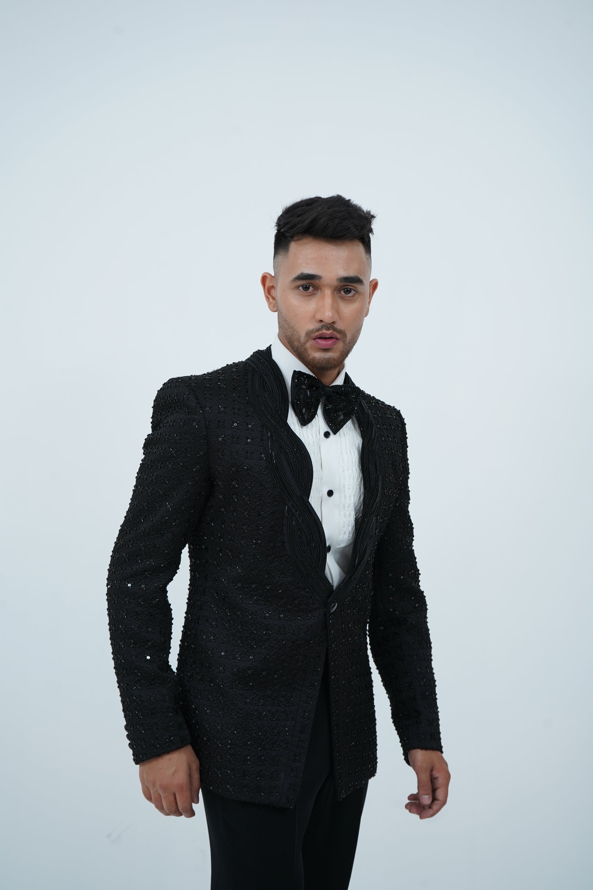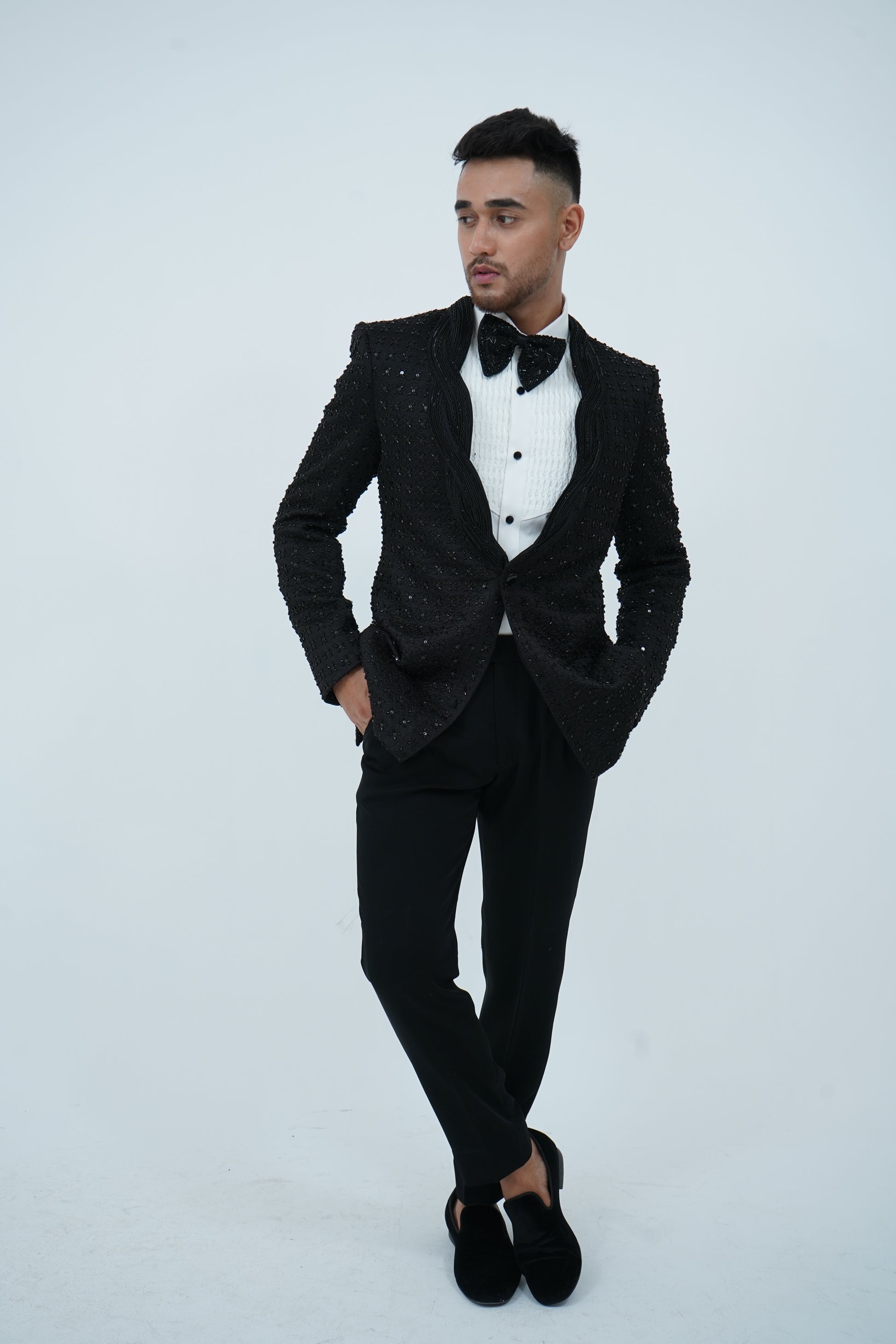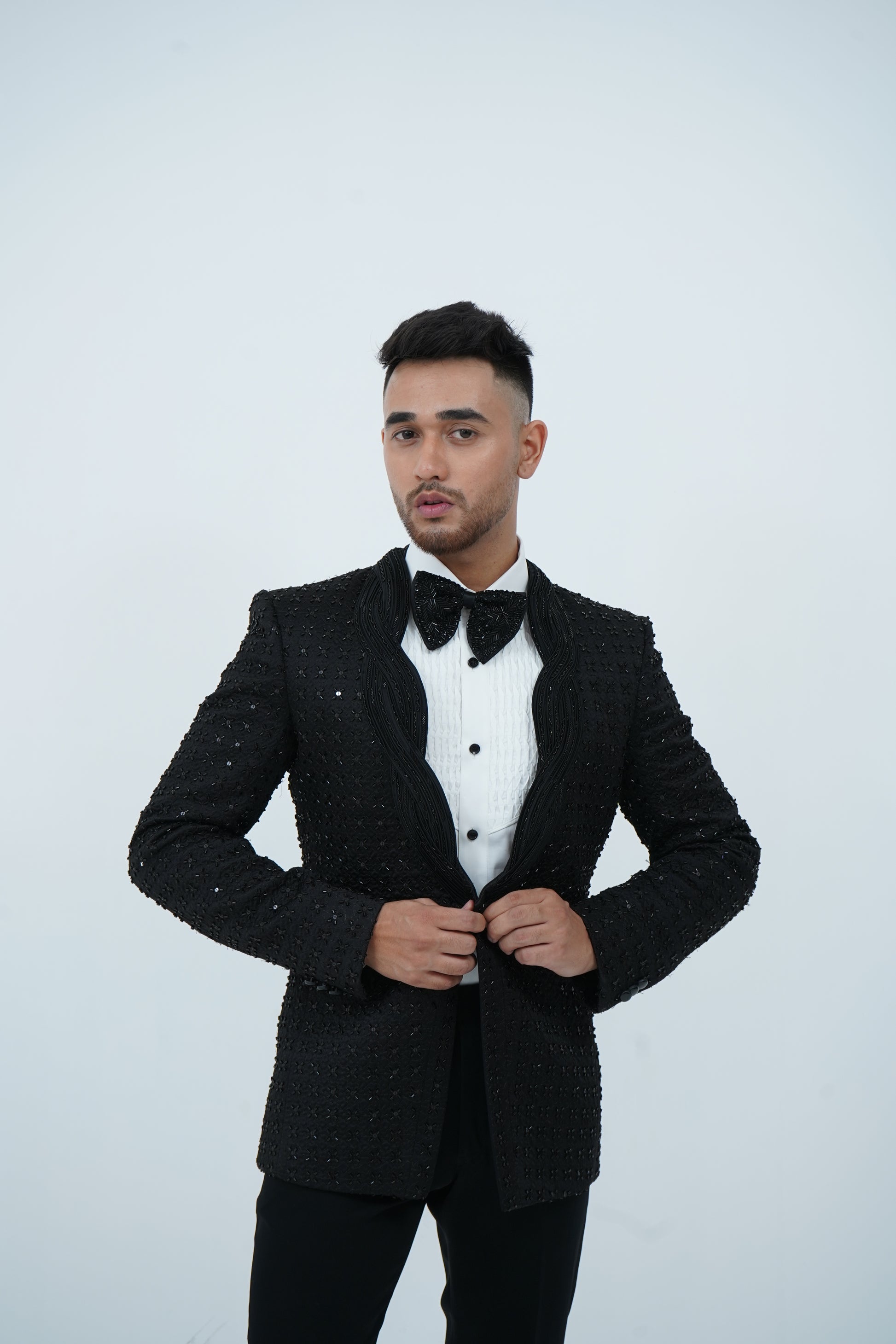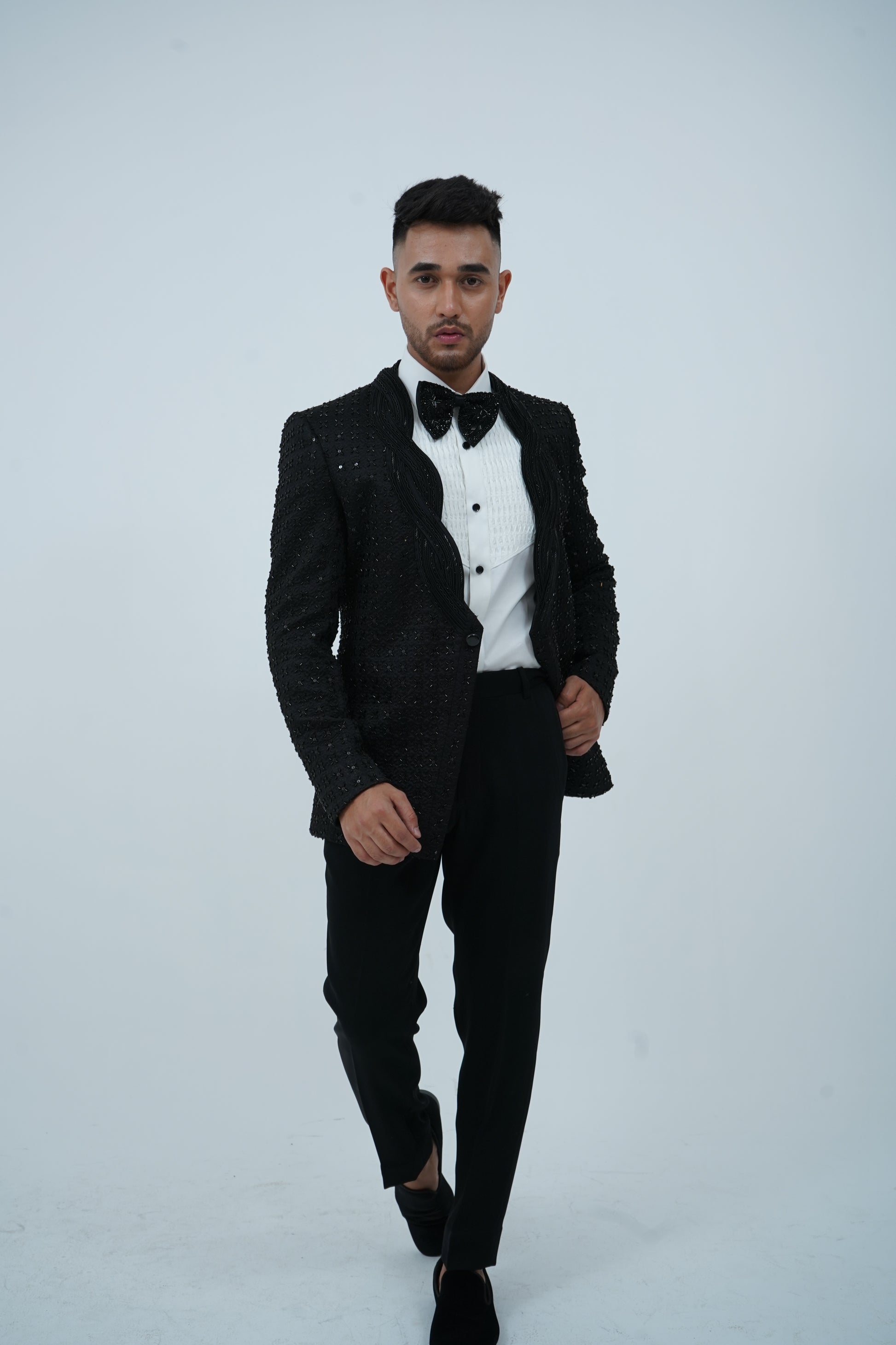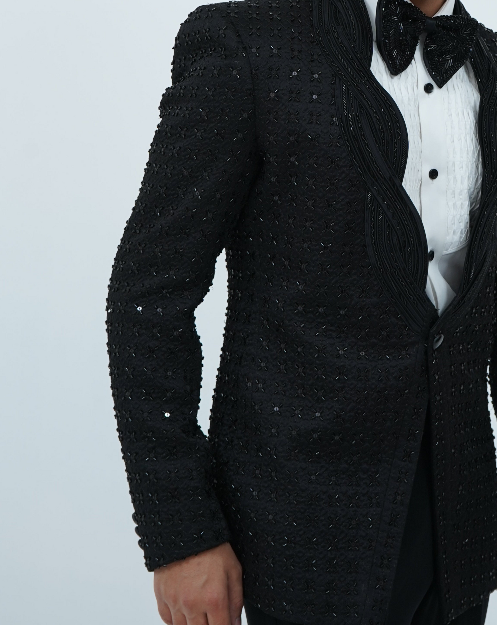 Zardozi Zari Japenese Black Tuxedo with Zardozi Work