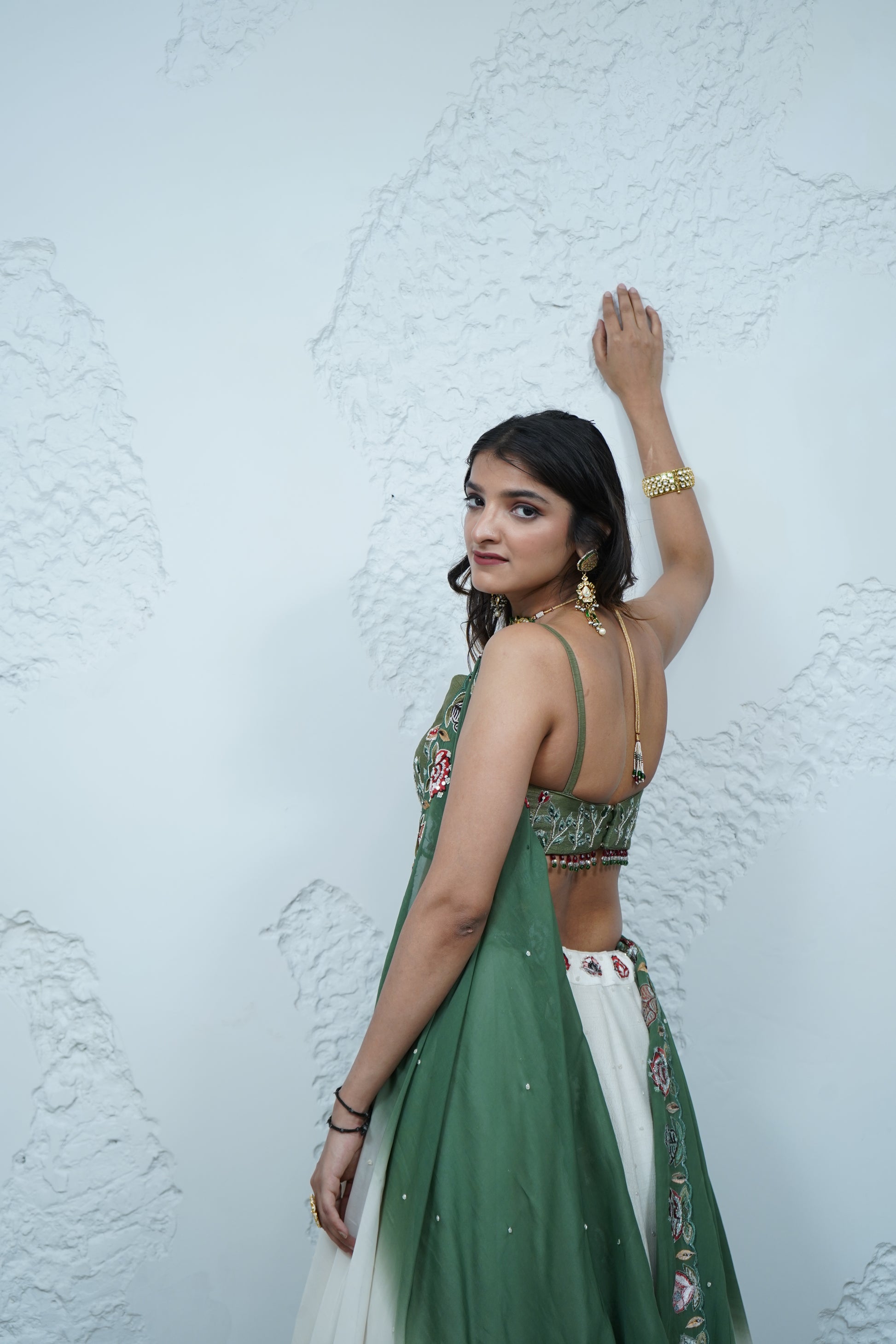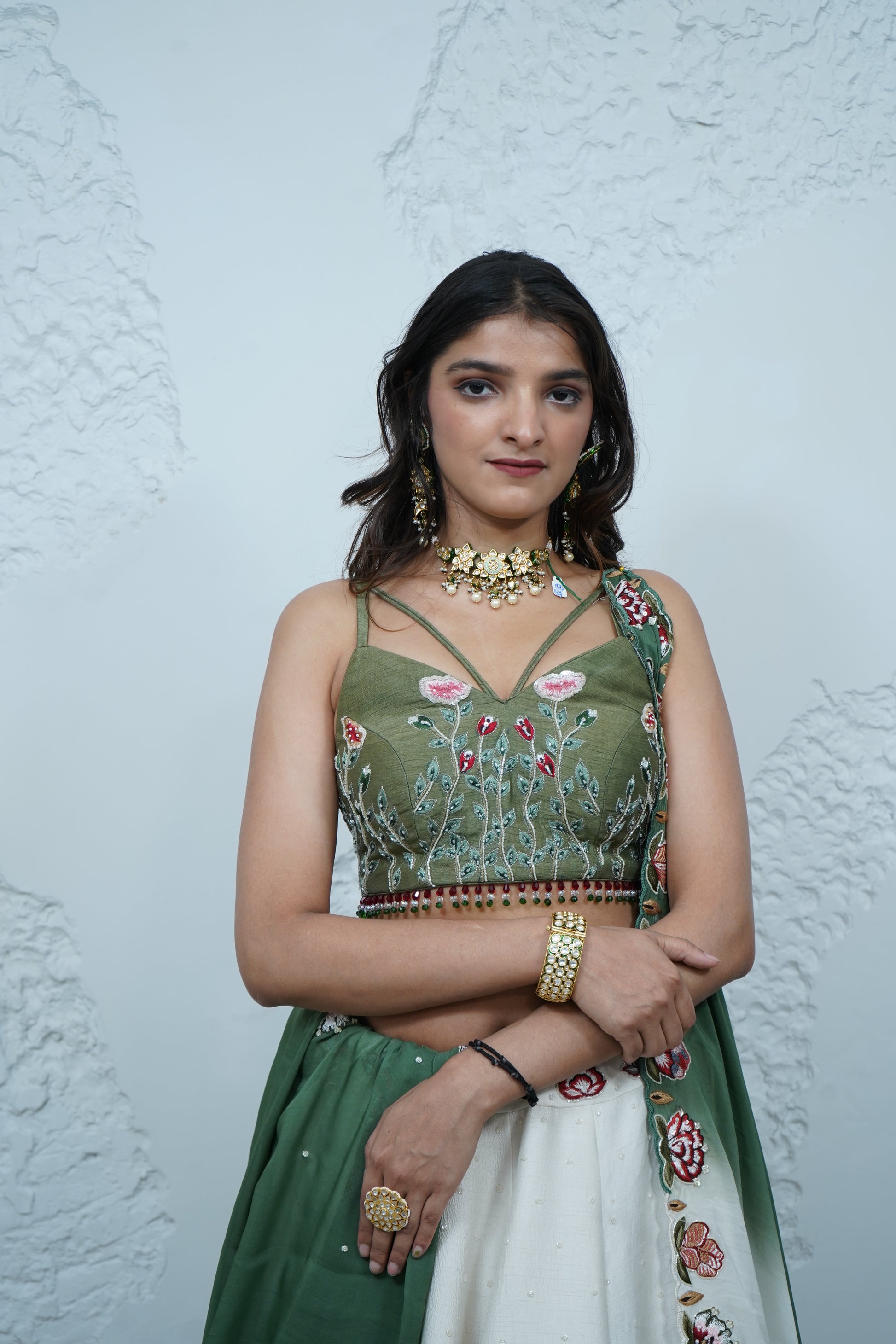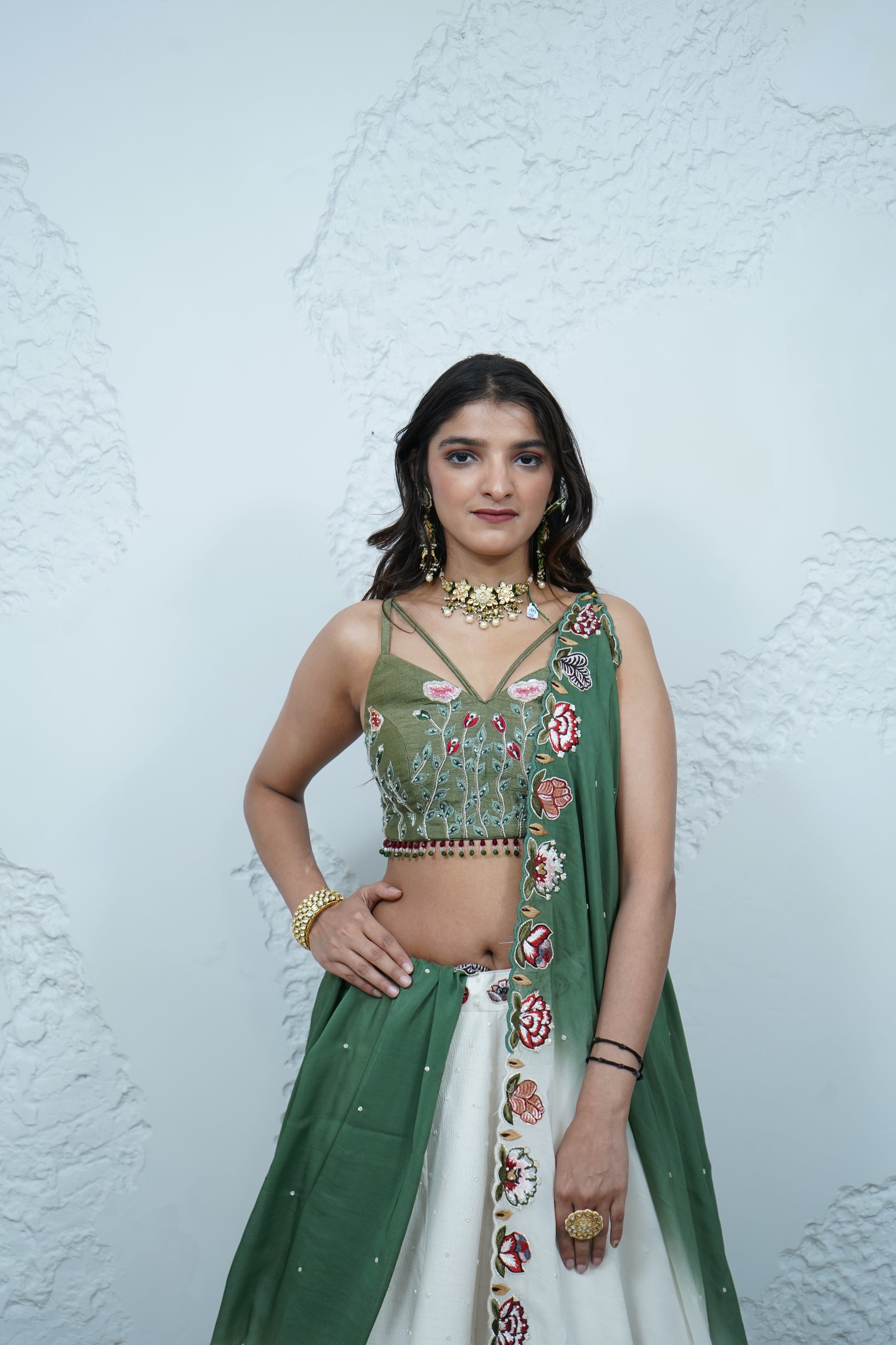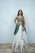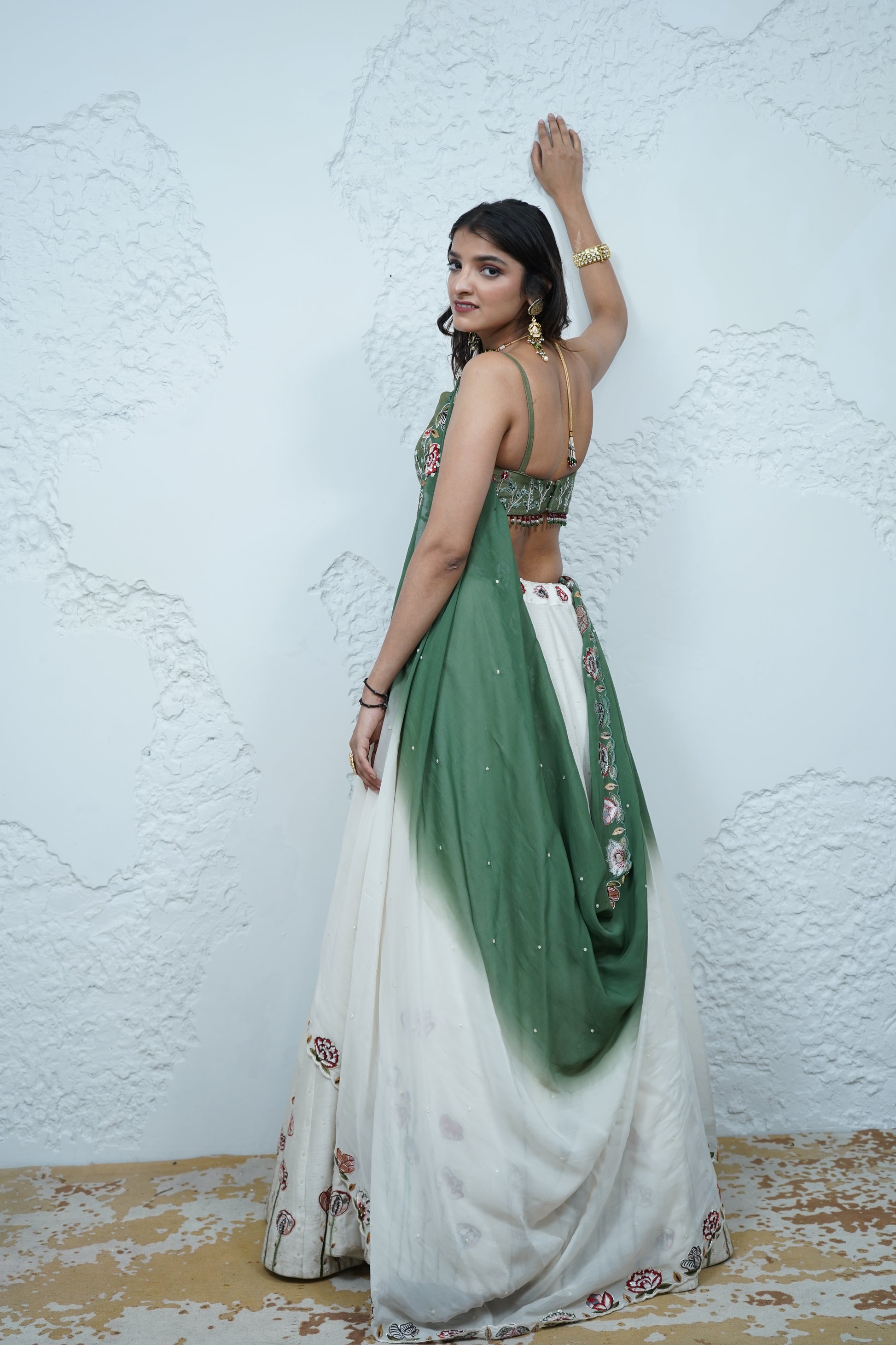 Zardozi Zari Raw Silk Clover Green Ombre Lehenga with Organza Dupatta